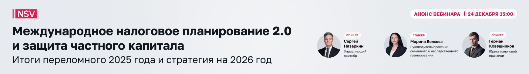 24 декабря в 15:00 (мск) на вебинаре юридической компании NSV Consulting мы детально разберем: