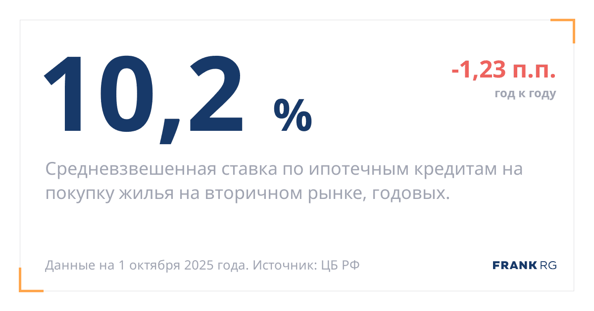 По оценке Frank RG, в октябре 2025 года объем выданных ипотечных кредитов достиг 499,9 млрд рублей, что на 18% выше сентября 2025 года и 33% – октября 2024 года. В количественном выражении выдачи увеличились на 19%, составив 110,8 тысяч ипотечных кредитов (+28% к аналогичному периоду 2024 года). В октябре 2025 года ипотечный рынок по-прежнему поддерживали госпрограммы, выдачи по которым увеличились на 18% в денежном выражении и на 22% – в количественном. Высокие темпы роста наблюдались также и по рыночным ипотечным программам: на 19% и 15% соответственно. В конце года традиционно наблюдается повышенный потребительский спрос. Помимо этого, на рынке постепенно начинается реализация отложенного спроса на фоне цикла снижения ключевой ставки Банка России и стремления клиентов зафиксировать стоимость недвижимости.